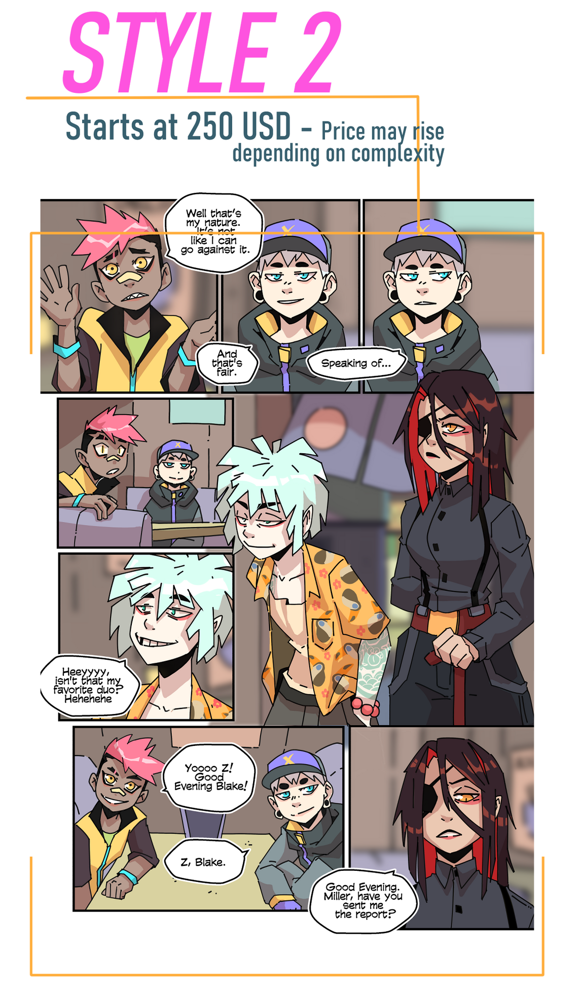 You'd like 1 to 3 pages featuring your character(s)?