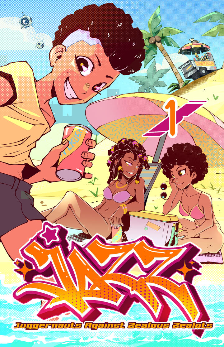 A 18+ urban fantasy action with a LGBTQ+ cast and female leads, showing off how badass they are on bikes, behind the wheel of a school bus and how they kick the butts of very well dressed office demons.I've been in the comic making for several years now ,starting seriously around 2015.